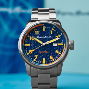 The Roscana blends timeless style with modern precision, powered by a reliable Japanese quartz movement for unparalleled accuracy. Its cubic pattern dial is accented by vibrant colour details, which exude understated elegance with a touch of vintage flair. Featuring a practical date display, the Roscana Quartz is as functional as it is stylish, making it a versatile accessory for any occasion.